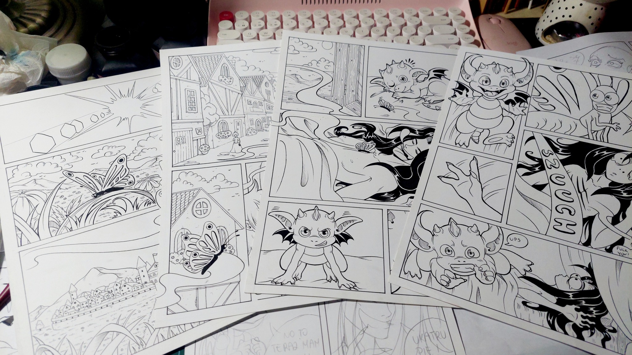Tak czy siak nawet nie łudziłam się z tym, że skończę tuszowanie stron w 2025 roku. Nie było na to szans. Licze jednak, że do wakacji 2026 będę już miała gotowy pierwszy rozdział wraz z nałożonymi rastrami i wszystkim co tam sobie wykminię.