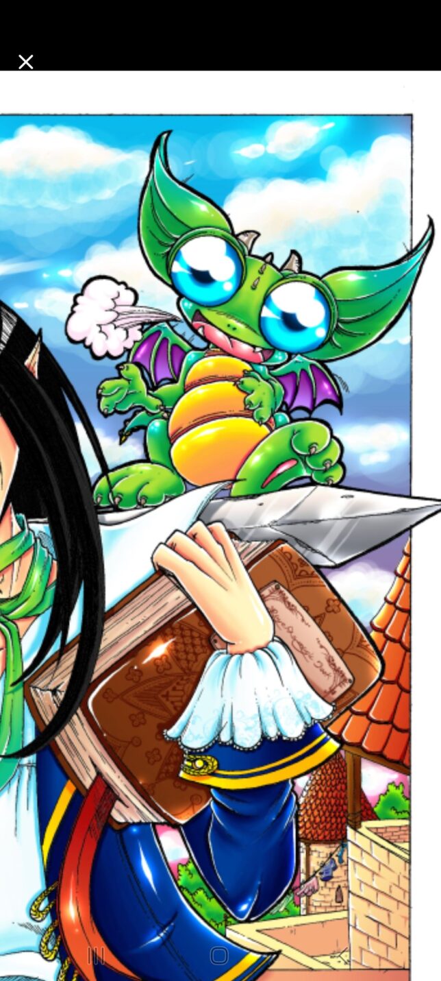 Natomiast kolejną rzeczą do zdesignowania jaka mi stała na przeszkodzie w rysowaniu plansz był niejaki Dresjon, nadworny smok należący do ojca Rayertha – RayHeartha. Miałam tylko jeden jedyny stary rysunek gdzieś skitrany z nim a tak to jedyne wyobrażenie w głowie co do jego osoby. Musiałam więc popełnić na szybko jakiś rysunek pomocniczy z nim ponieważ w odróżnieniu od starego komiksu Adventure With Koko, który jest do przeczytania na tej stronie on się pojawia już w pierwszym rozdziale.